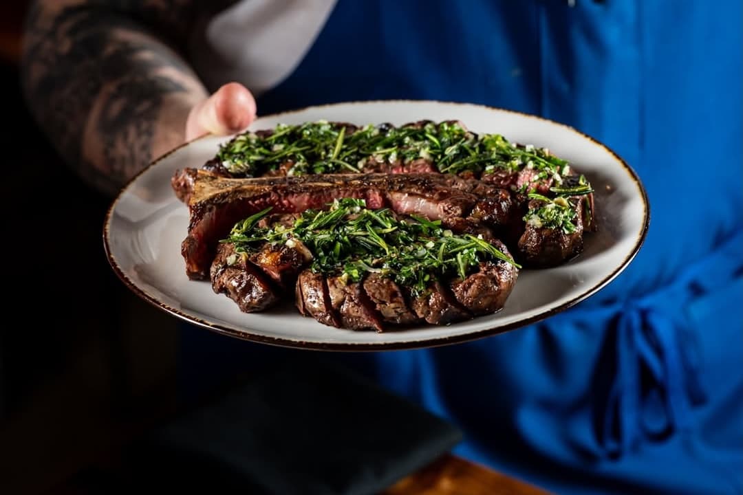 Everything is made in-house or sourced locally, with the menu anchored by Angeloni’s handmade pastas and big plates like a 12-oz bone-in veal parm. Late-night diners get their own reward too — after 9 p.m., a $99, 28-oz Bistecca Fiorentina lands squarely in after-theatre territory.